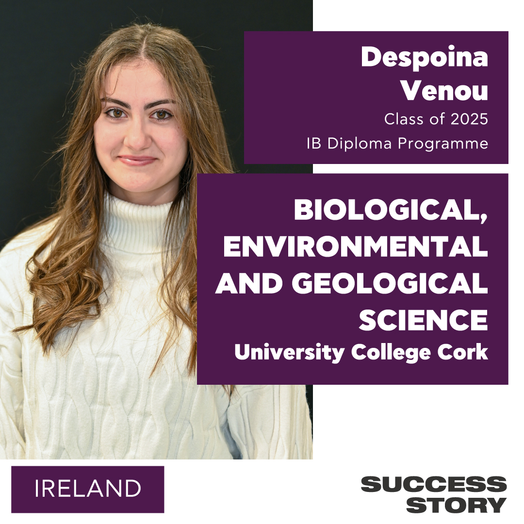 We are proud to announce that Despoina Venou will pursue Biological, Environmental and Geological Sciences at University College Cork.