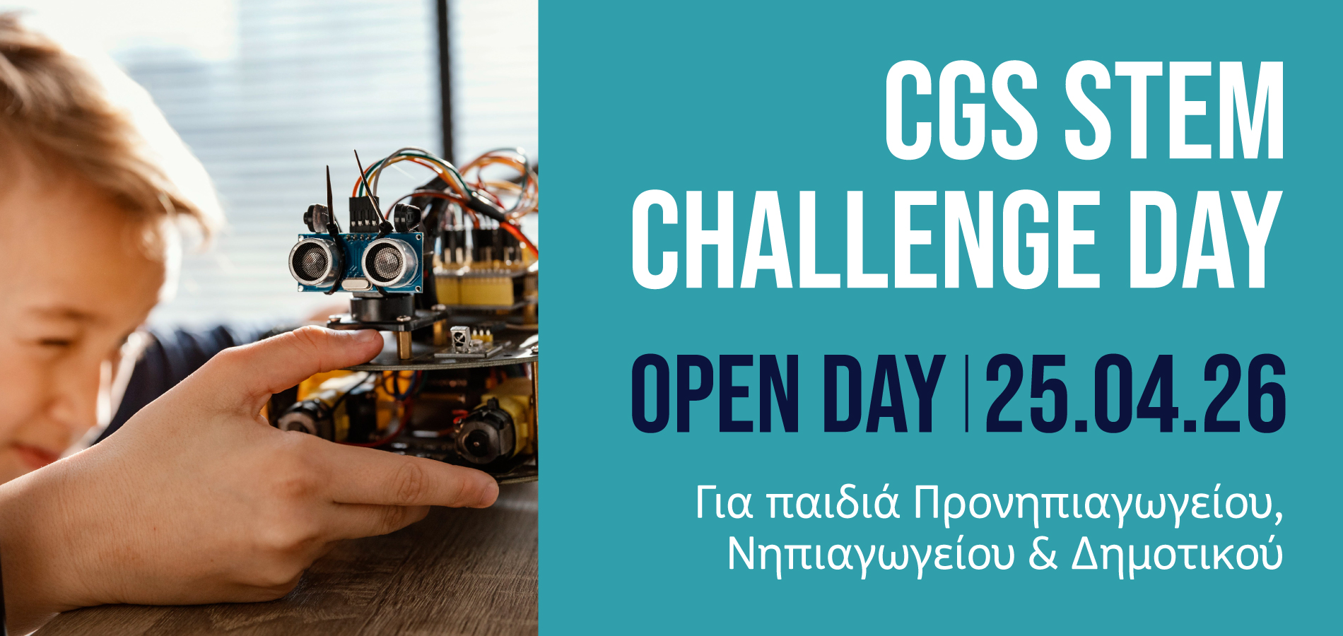 Το CGS STEM Challenge Day 2026 θα πραγματοποιηθεί το Σάββατο 25 Απριλίου 2026, 09:30-14:30, στις εγκαταστάσεις του CGS.