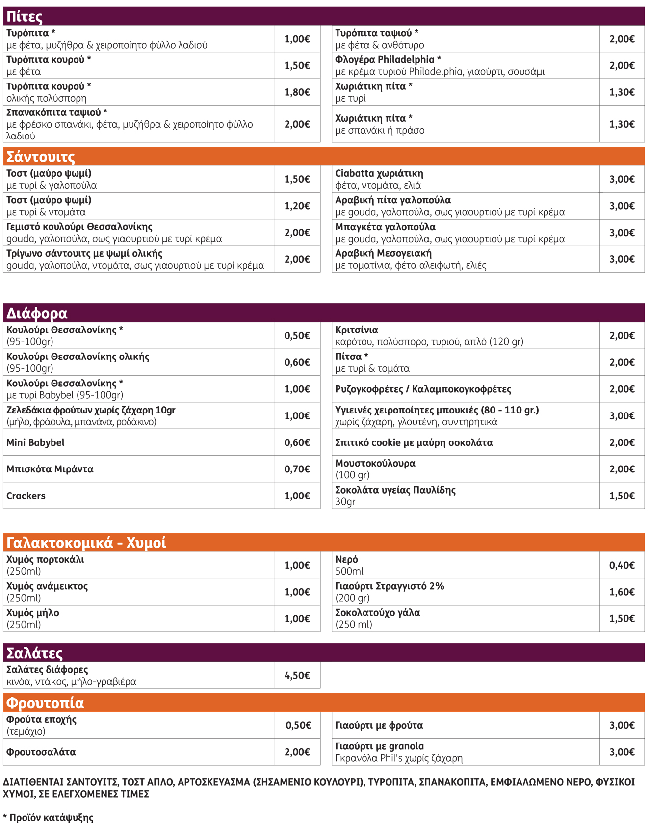 Κατάλογος Κυλικείου